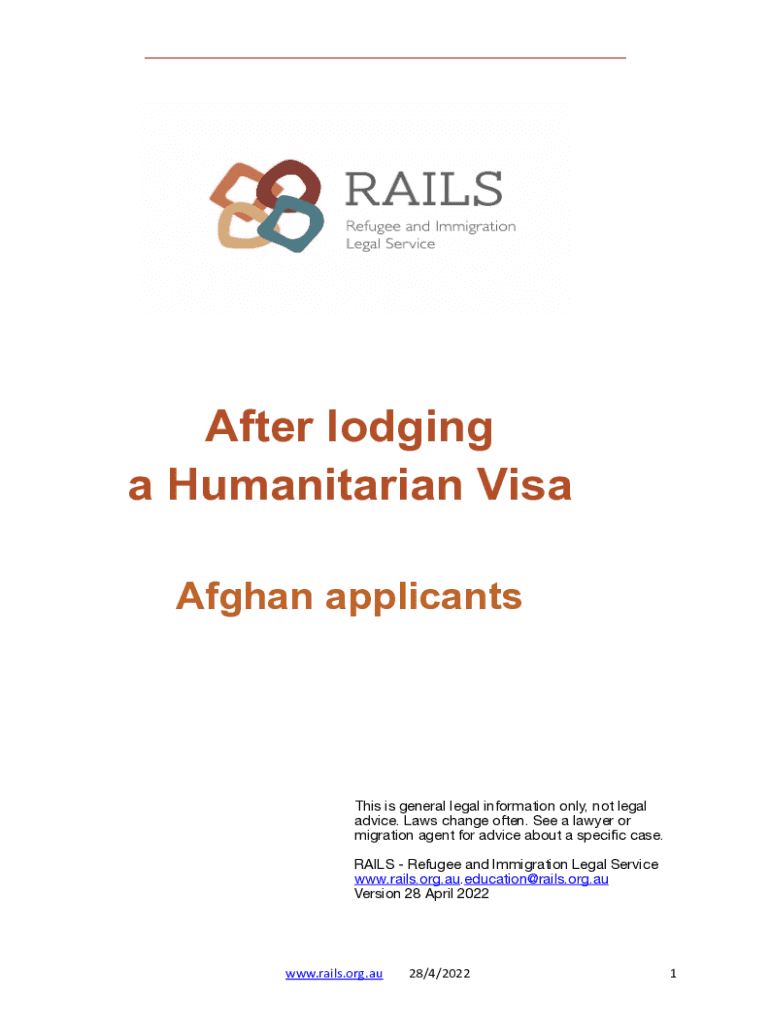 ___After lodging a Humanitarian Visa Afghan applicantsThis is general legal information only, not legal advice. Laws change often. See a lawyer or migration agent for advice about a specific case.