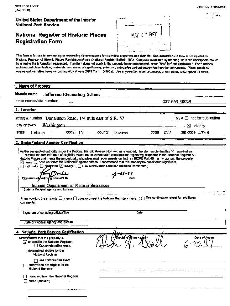 NPS Form 10900 (Oct. 1990)OMB No. 100240011United States Department of the Interior National Park ServiceNational Register of Historic Places Registration Form This form is for use in nominating or