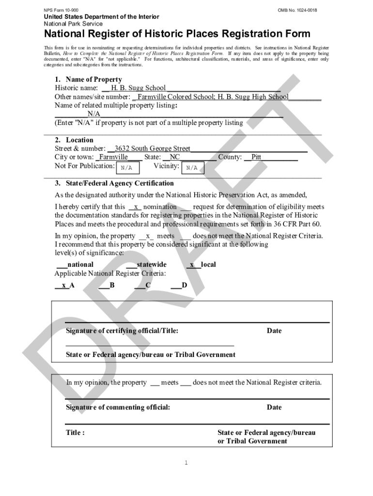 NPS Form 10900OMB No. 10240018United States Department of the Interior National Park ServiceNational Register of Historic Places Registration Form This form is for use in nominating or requesting