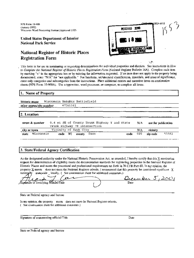 00240018NPS Form 10900 (January 1992) Wisconsin Word Processing Format (Approved 1/92)United States Department of Interior National Park ServiceNational Register of Historic Places Registration Form