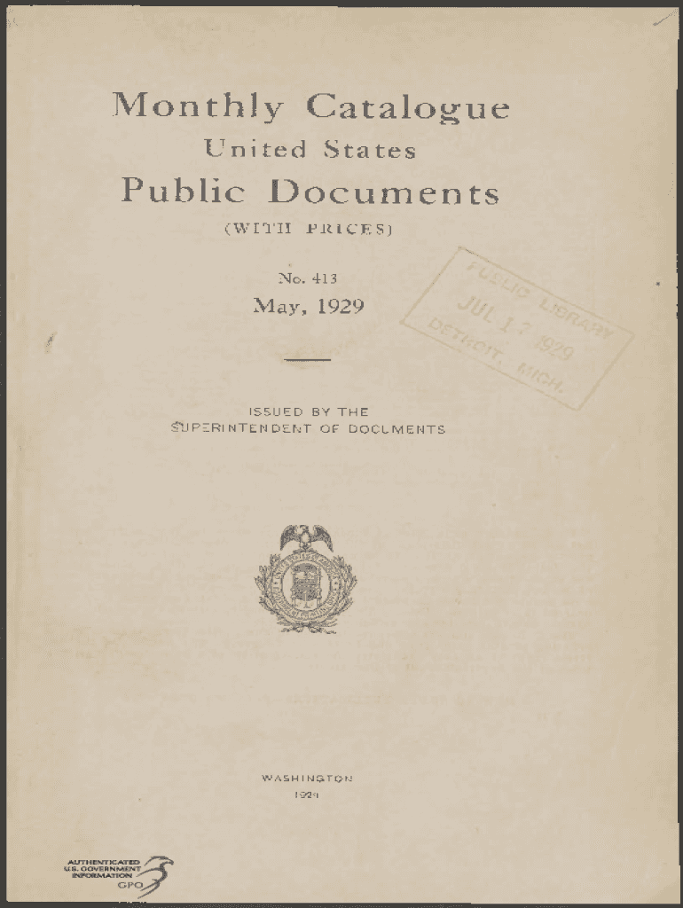 Monthly Catalog United StatesPublic Documents (WITH PRICES)No. 413May, 1929ISSUED BY THE SUPERINTENDENT OF DOCUMENTSWASHINGTON 1929Abbreviations Appendix___ app. Congress Cong. Department___ Dept.