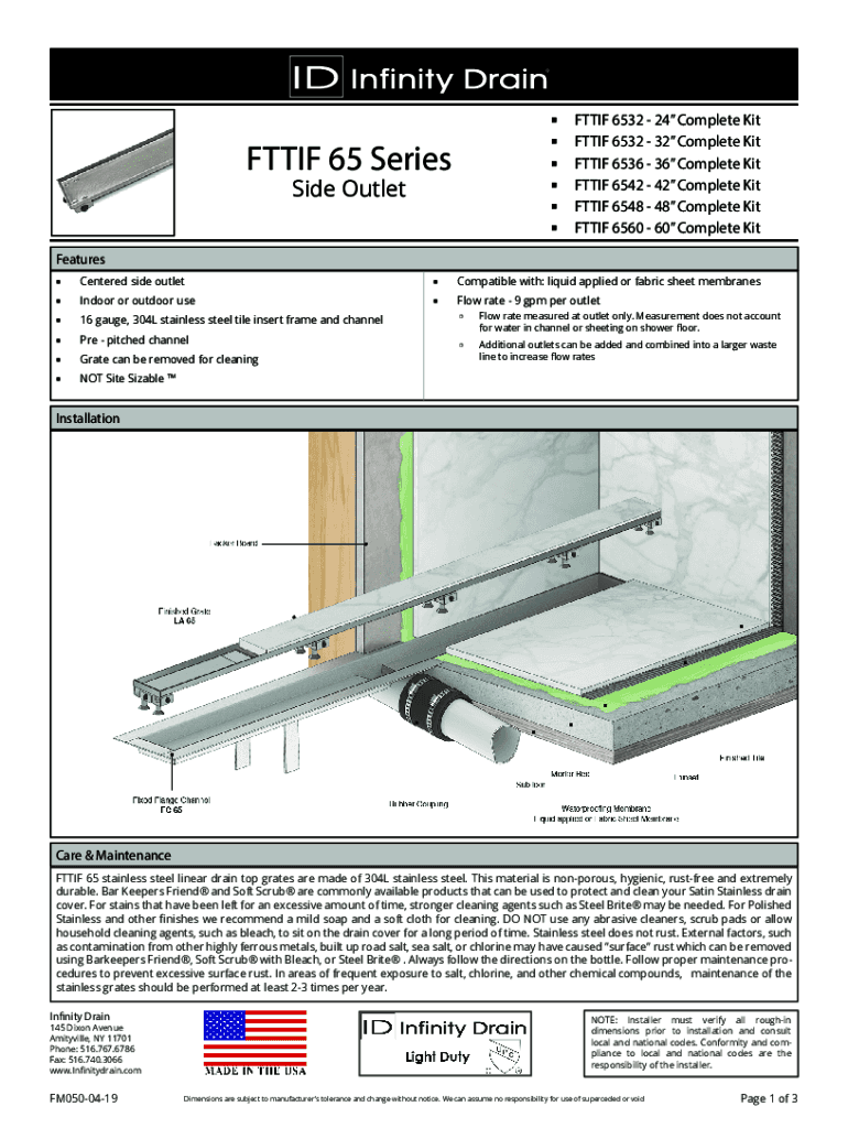 FT TIF 65 Series Side OutletFTTIF 6532 24 Complete Kit FT TIF 6532 32 Complete Kit FT TIF 6536 36 Complete Kit FT TIF 6542 42 Complete Kit FT TIF 6548 48 Complete Kit FT TIF 6560 60 Complete Misfeatures