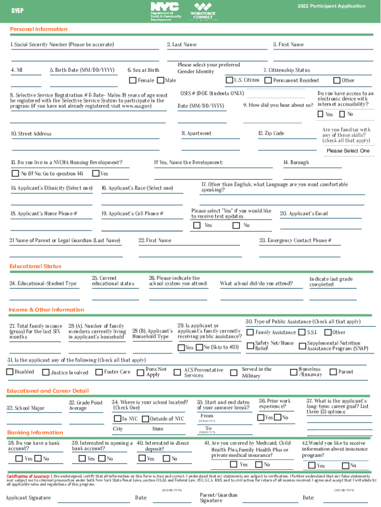 2202 Summer Youth Employment Program (STEP) Participant Application (Youth Ages 1415) Applicable to all STEP program options2022 Participant Applications Personal Information1. Social Security Number