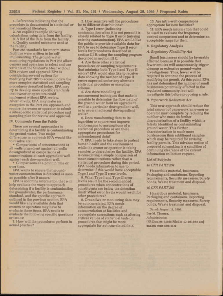 2 9 3 1 4 ___ F ed era R e.g. sister / Vol. 51, No. 161 / W ed n BS day, August 20, 1986 / Proposed Rules 1. References indicating that the procedure is documented in statistical or mathematical literature,