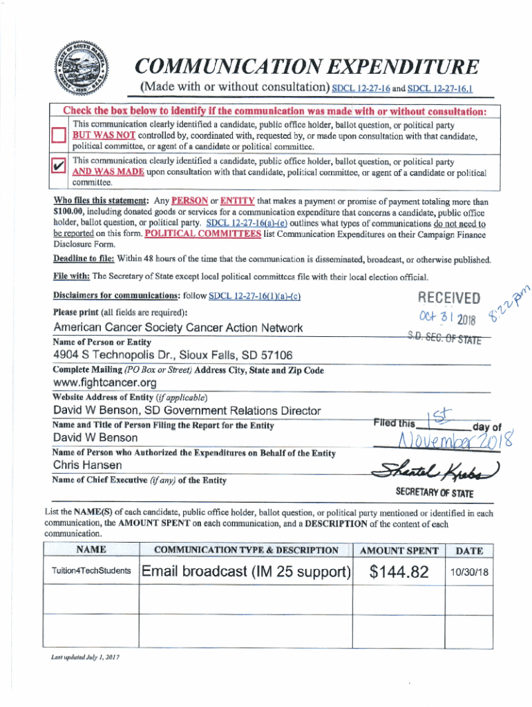 C O COMMUNICATE ON EXPEL TDI SURE(Made with or without consultation) SpcL122716 ADSL l227t6.1Check the box before to identify of the communication WSS made with or without consultation:this communication