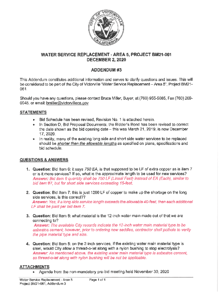 PREBID MEETING SIGN IN SHEET Monday, November 30, 2020 9:30 am PST Virtual via WebexPROJECT NAME: SERVICE LINE REPLACEMENT PROJECT AREA 5 PROJECT #: BM21061This meeting is virtual/ nonmandatoryCOMPANY