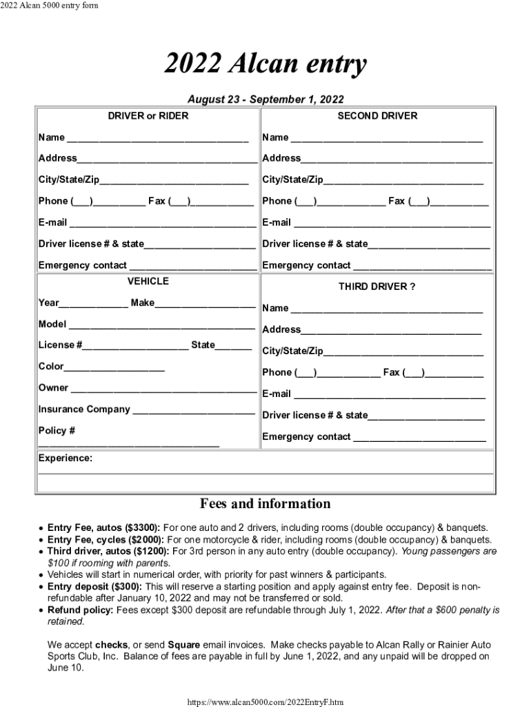 All participants wishing to compete in the Alcan 5000 rally must file the entry form.