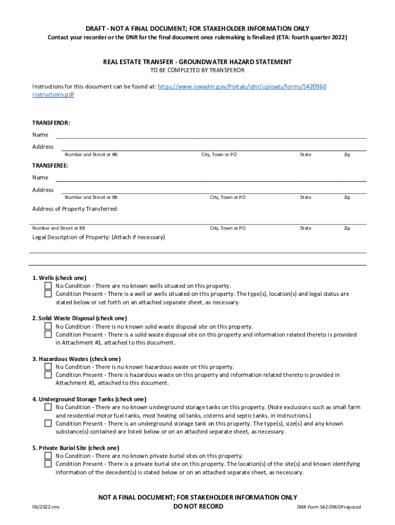 Get the free Real Estate Transfer - Groundwater Hazard Statement