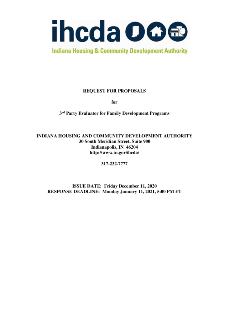 3rd Party Evaluator for Family Development ProgramsINDIANA HOUSING AND COMMUNITY DEVELOPMENT AUTHORITY