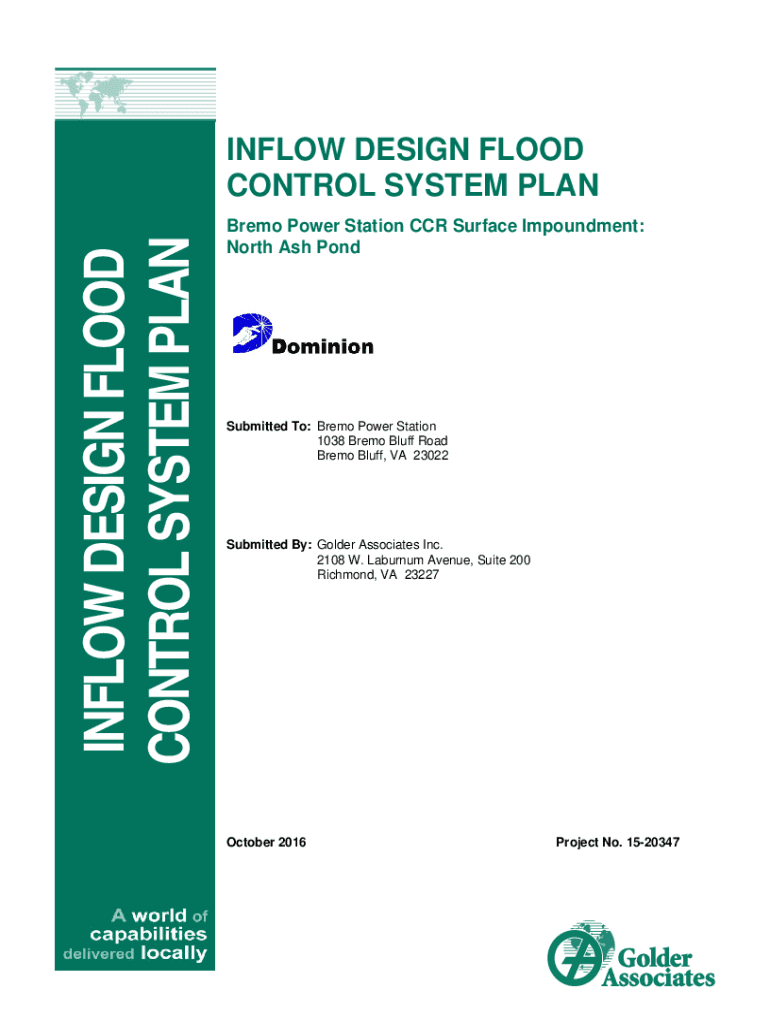 Get the free Bremo Power Station North Ash Pond Inflow Design Flood Control System. Bremo Power S...