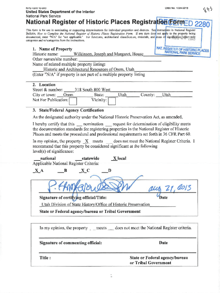 Get the free NP::; t-orm 10-900 UMI:! No. 1024-0018 United States Department of the ...