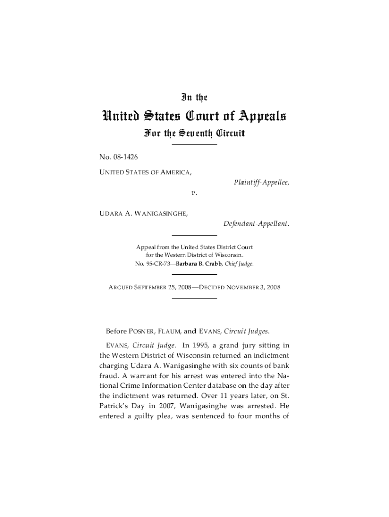 In reunited States Court of Appeals For the Seventh Circuit No. 081426 U NOTED STATES OF A AMERICA, PlaintiffAppellee, v. U DATA A. W ANIGASINGHE, DefendantAppellant. Appeal from the United States