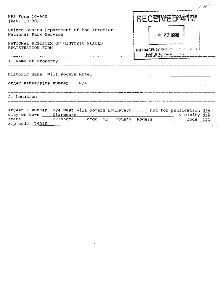 /^, NFS Form 10900 (Rev. 1090)RECHVEBPUnited States Department of the Interior National Park Service NATIONAL REGISTER OF HISTORIC PLA.CES REGISTRATION FORM23894 INTERAGENCYRESOUH;1. Name of Property