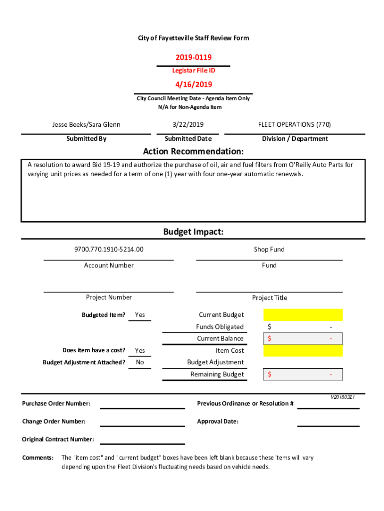 City of Fayetteville Staff Review Form20190119 Register File ID4/16/2019 City Council Meeting Date Agenda Item Only N/A for Agenda Item Jesse Weeks/Sara Glenn3/22/2019FLEET OPERATIONS (770)Submitted