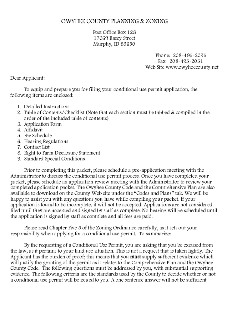 TOWHEE COUNTY PLANNING & ZONING Post Office Box 128 17069 Based Street Murphy, ID 83650 Phone: 2084952095 Fax: 2084952051 Website www.owyheecounty.net Dear Applicant: To equip and prepare you for
