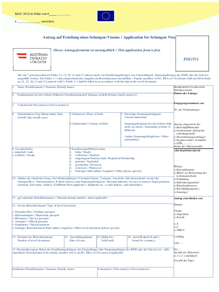 UK Austrian Embassy London Application for Schengen Visa 2020-2025 free printable template