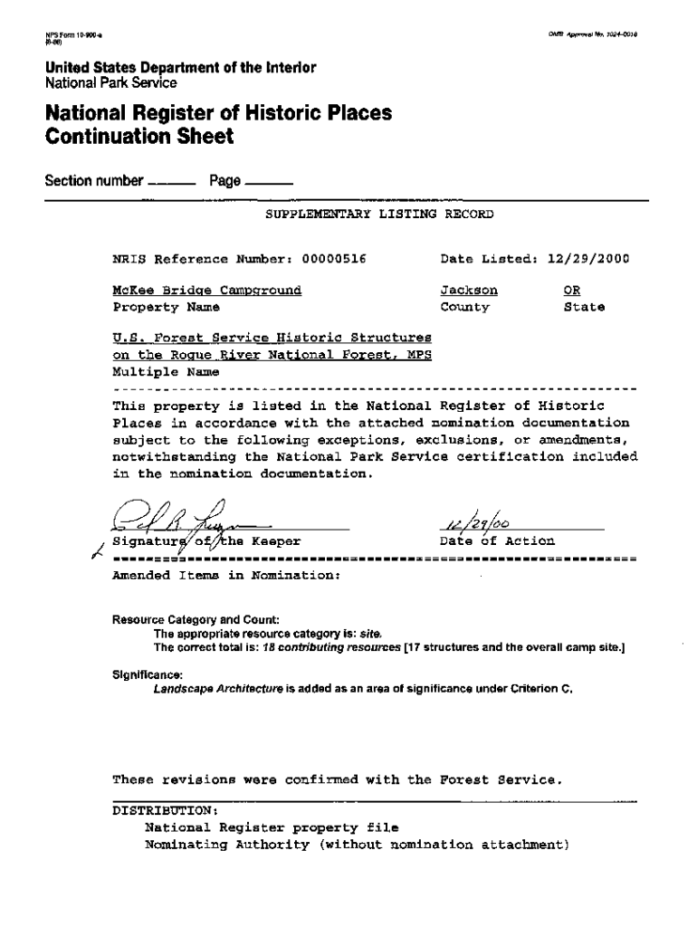 NPS Form 10900aOMB Approval No. 10240018United States Department of the Interior National Park ServiceNational Register of Historic Places Continuation Sheet Section number Page SUPPLEMENTARY LISTING