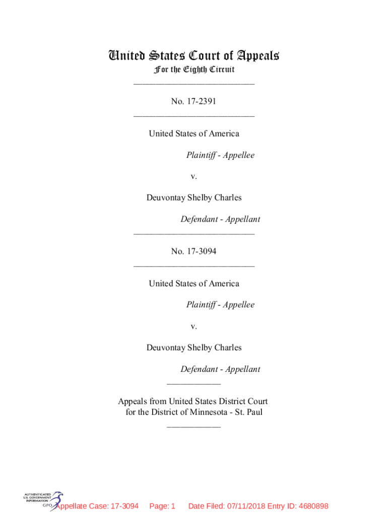 United States Court of Appeals For the Eighth Circuit ___ No. 172391 ___ United States of America lllllllllllllllllllllPlaintiff Appealed v. Devonian Shelby Charles lllllllllllllllllllllDefendant