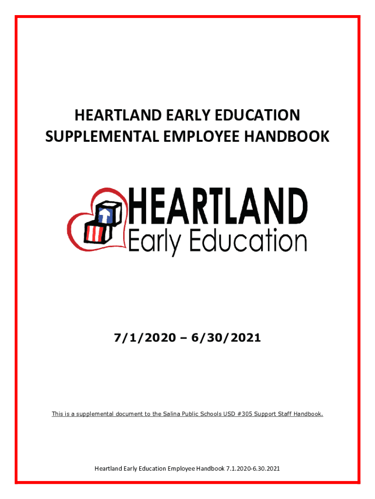 SUPPLEMENTAL EMPLOYEE HANDBOOK7/1/2020 6/30/2021This is a supplemental document to the Salina Public Schools USD #305 Support Staff Handbook. Heartland Early Education Employee