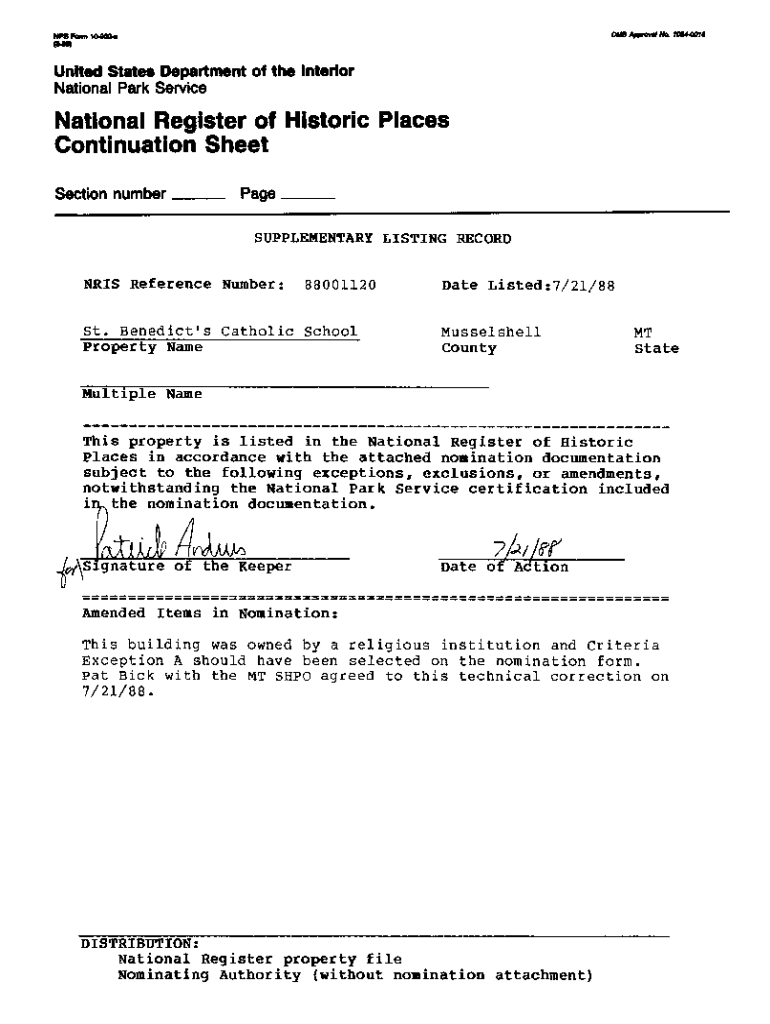0 MB Afro** Ma. 1 OMOOf8NPSFm1O00United States Department of the Interior National Park ServiceNational Register of Historic Places Continuation Sheet Section number Page SUPPLEMENTARY LISTING RECORDERS