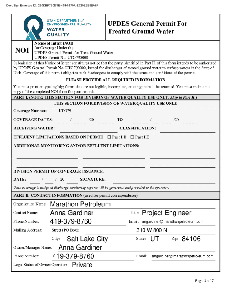 Get the free UPDES General Permit For Treated Ground Water Marathon ...