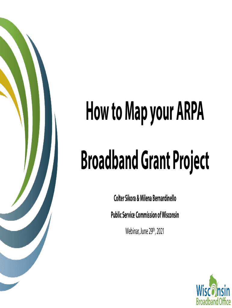 How to Map your ARPA Broadband Grant Project Colder Sonora & Milena Bernardino Public Service Commission of Wisconsin Webinar, June 29th, 2021Webinar Goals! Review the new ARPA Broadband Access Grant