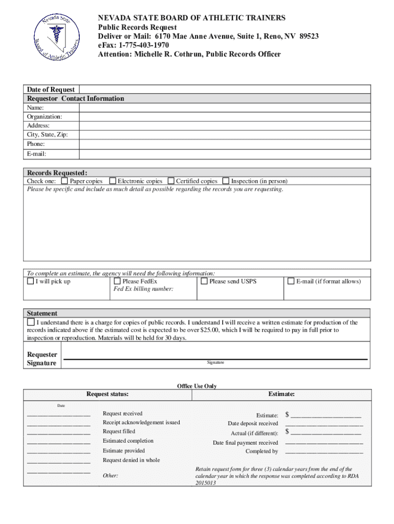 How to fill out nevadaathletictrainersnvgovuploadedfilespublic record request state?