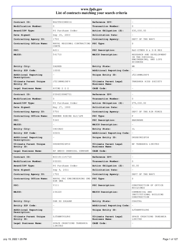 List of contracts matching your search criteria