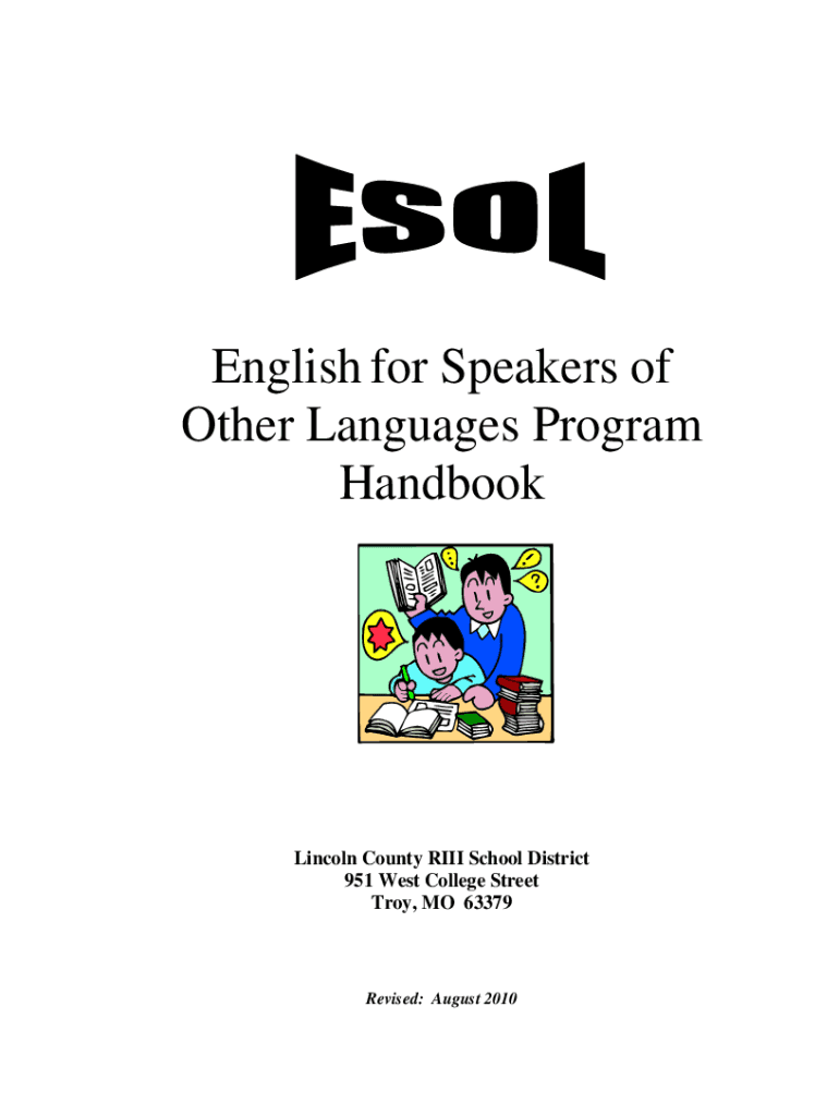 English for Speakers of Other Languages Program Handbook Lincoln County III School District 951 West College Street Troy, MO 63379Revised: August 2010Lincoln County (Troy) III Board PolicyPhilosophy
