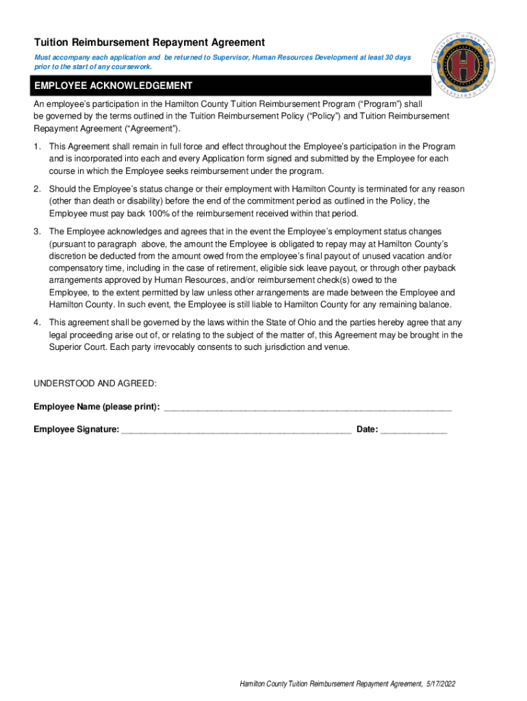 Get the free Tuition Reimbursement Repayment Agreement - EMPLOYEE ...