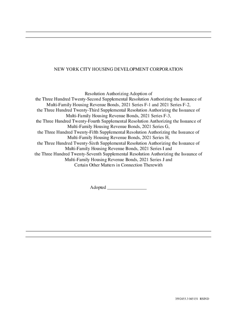 NEW YORK CITY HOUSING DEVELOPMENT CORPORATIONResolution Authorizing Adoption of the Three A Hundred TwentySecond Supplemental Resolution Authorizing the Issuance of MultiFamily Housing Revenue Bonds,