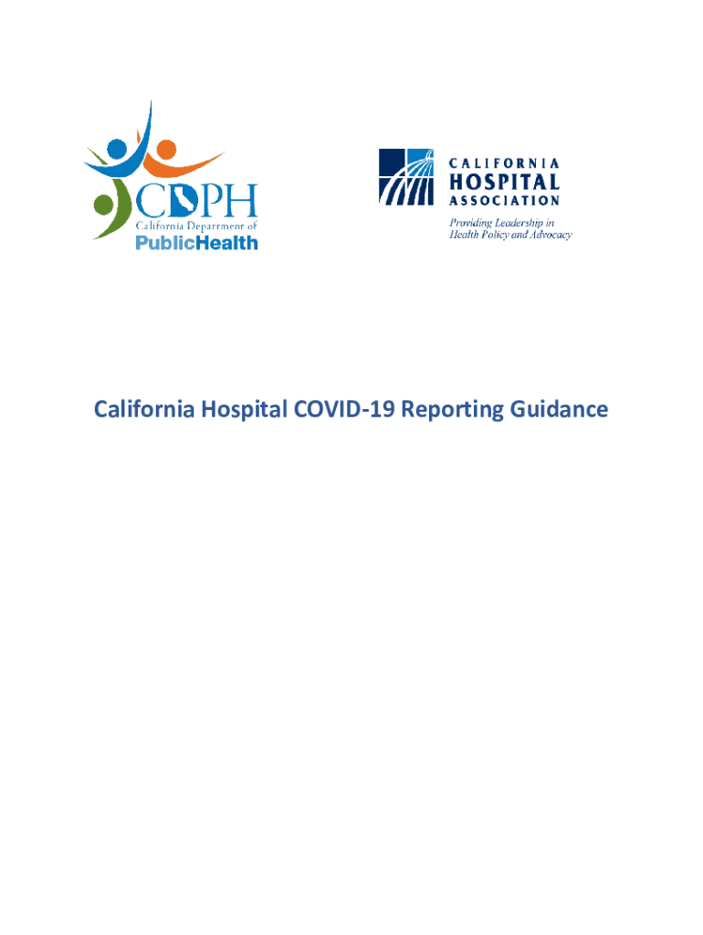 California Hospital COVID-19 Reporting GuidanceTable of Contents California Hospital COVID-19 Reporting Guidance1Updates3Executive Summary4Reporting Overview: Why Data Reporting is Vitally Important5How