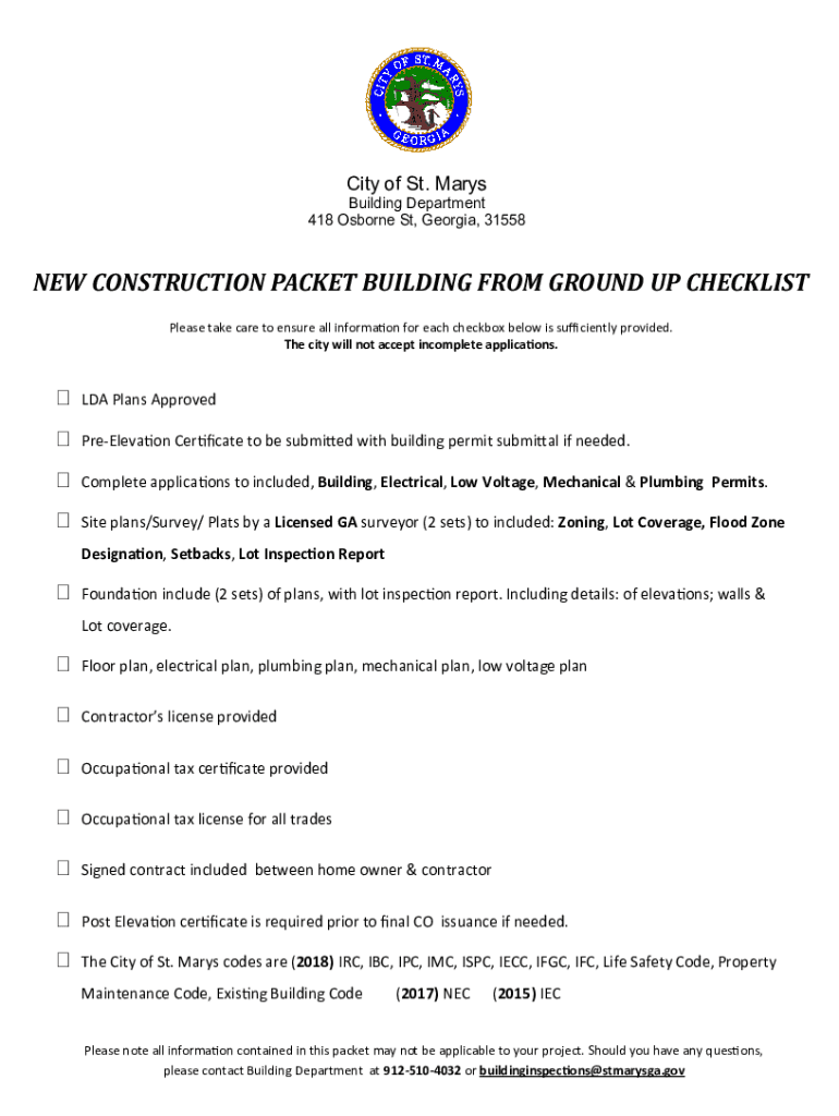 418 Osborne St, Georgia, 31558NEW CONSTRUCTION PACKET BUILDING FROM GROUND UP CHECKLIST
