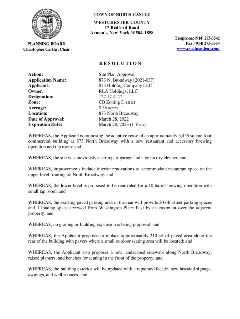 TOWN OF NORTH CASTLE WESTCHESTER COUNTY 17 Bedford Road Armonk, New York 105041898 Telephone: (914) 2733542 Fax: (914) 2733554 www.northcastleny.comPLANNING BOARD Christopher Cathy, Irresolution Action: