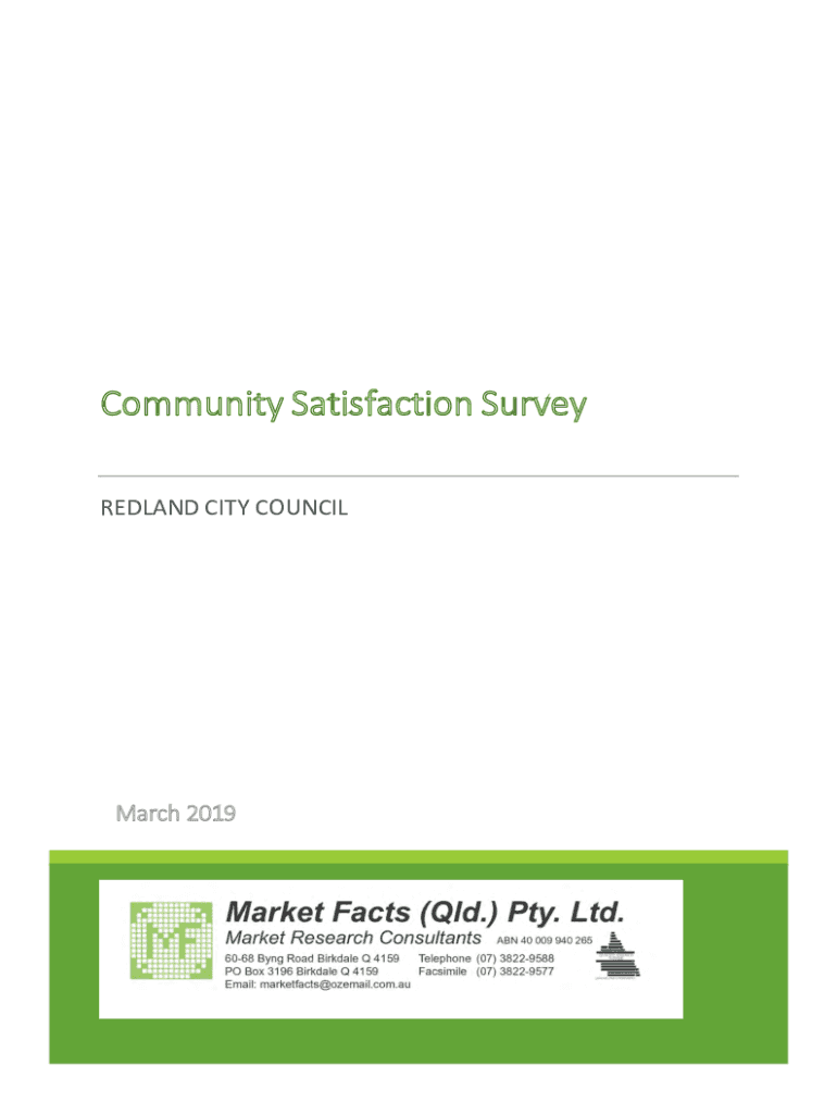 Community Satisfaction Survey REDLAND CITY COUNCIL March 2019TABLE OF CONTENTS INTRODUCTION Objectives of Survey Themes of Council Responsibility Structured Sample Survey Briefing Material Supplied