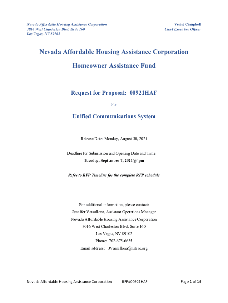 Verse Campbell Chief Executive Officer Nevada Affordable Housing Assistance Corporation 3016 West Charleston Blvd. Suite 160 Las Vegas, NV 89102Nevada Affordable Housing Assistance Corporation Homeowner