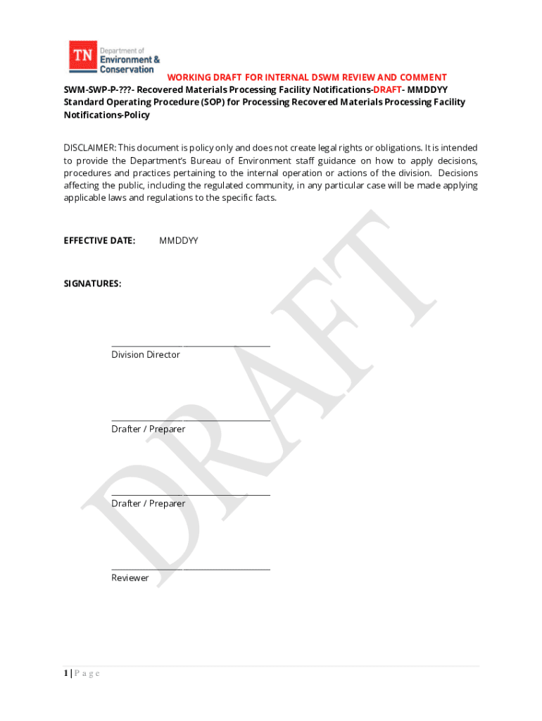 This form is used for internal review within the Department of Solid Waste Management (DSWM) at www.tn.gov.