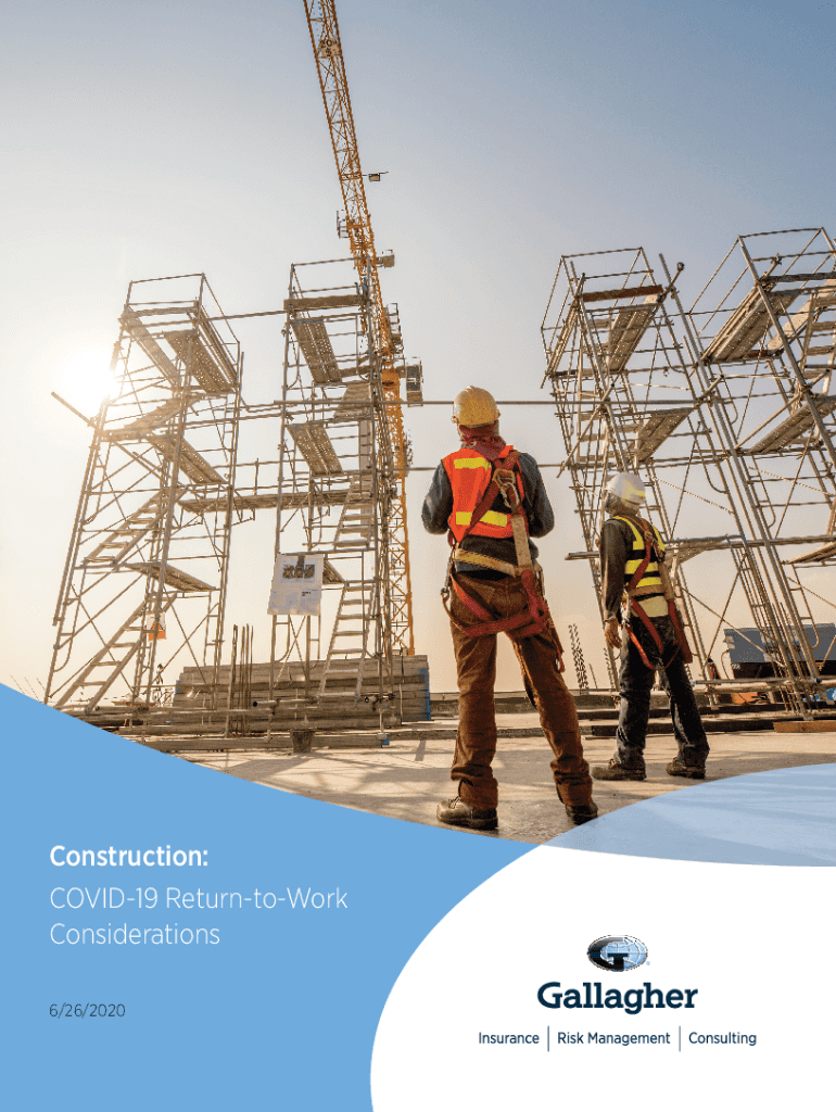 Construction: COVID-19 ReturntoWork Considerations 6/26/2020AJ G.CO M1The reopening of previously closed facilities, job sites and officeGallaghers expertise can help your:buildings following a pandemic