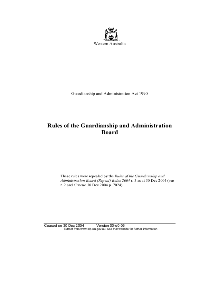 Western AustraliaGuardianship and Administration Act 1990Rules of the Guardianship and Administration Barthes rules were repealed by the Rules of the Guardianship and Administration Board (Repeal)
