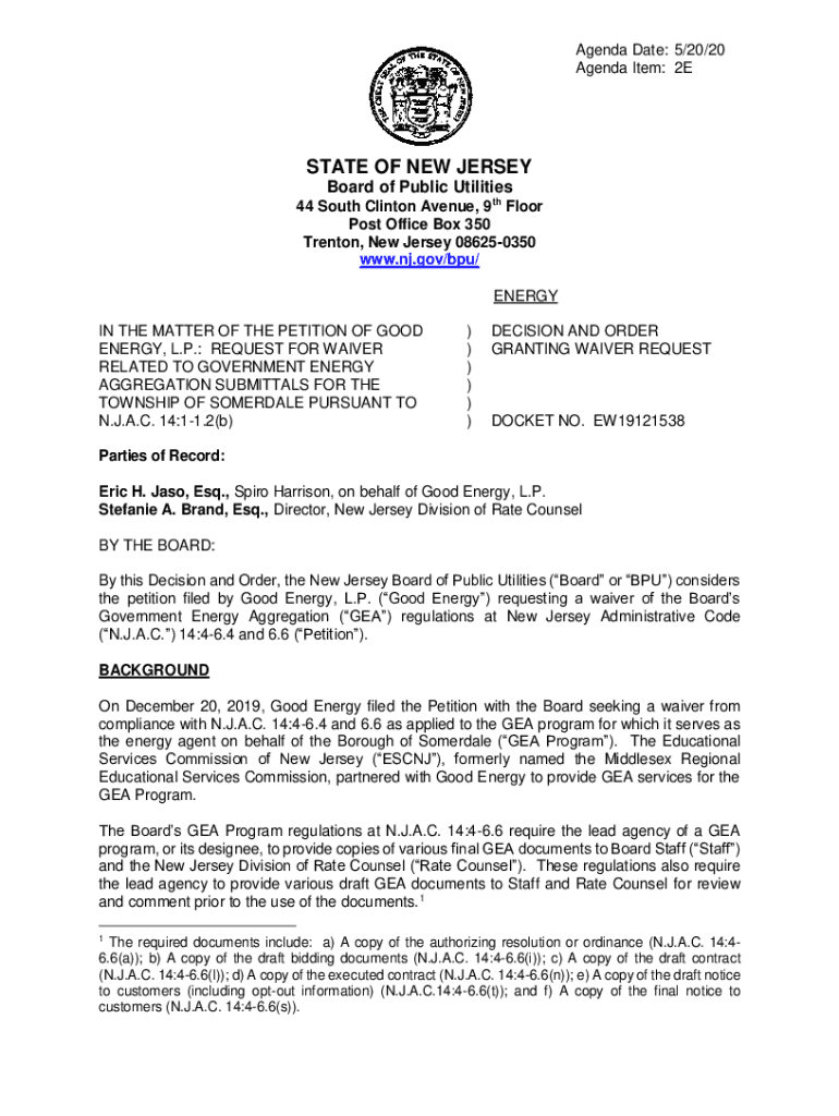 Get the free nj.gov boardorders 2020/20200520/5-20/20/2ESTATE OF NEW JERSEY Board of Public Utili...