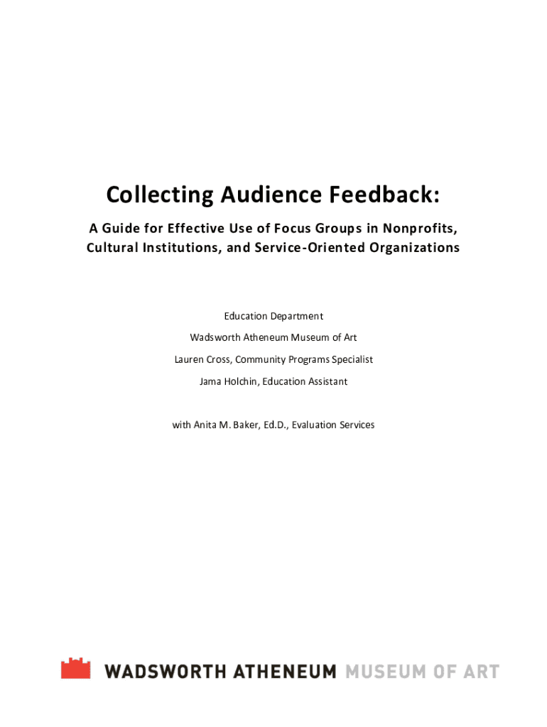Collecting Audience Feedback: A Guide for Effective Use of Focus Groups in Nonprofits, Cultural Institutions, and ServiceOriented OrganizationsEducation Department Wadsworth Atheneum Museum of Art