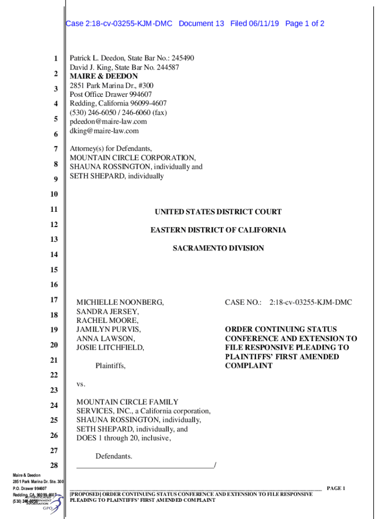 Case 2:18cv03255KJMDMC Document 13 Filed 06/11/19-Page 1 of 21 2 3 4 5 6 7 8 9Patrick L. Dee don, State Bar No.: 245490 David J. King, State Bar No. 244587 MAINE & DEED ON 2851 Park Marina Dr., #300