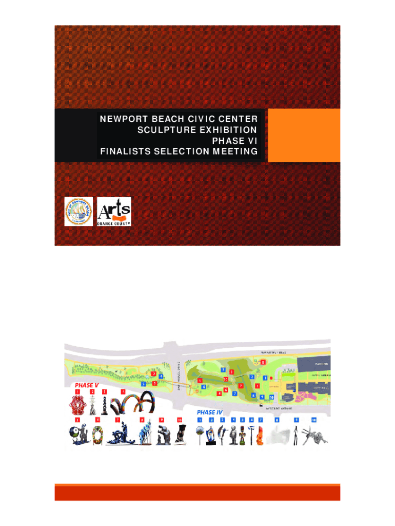 NEWPORT BEACH CIVIC CENTER SCULPTURE EXHIBITION PHASE VI FINALISTS SELECTION MEETINGSELECTION CRITERIA: ArtisticMerit: Artworkisofhighqualityanddemonstrativeoforiginalityandartisticexcellence Artisthasstrongprofessionalqualifications