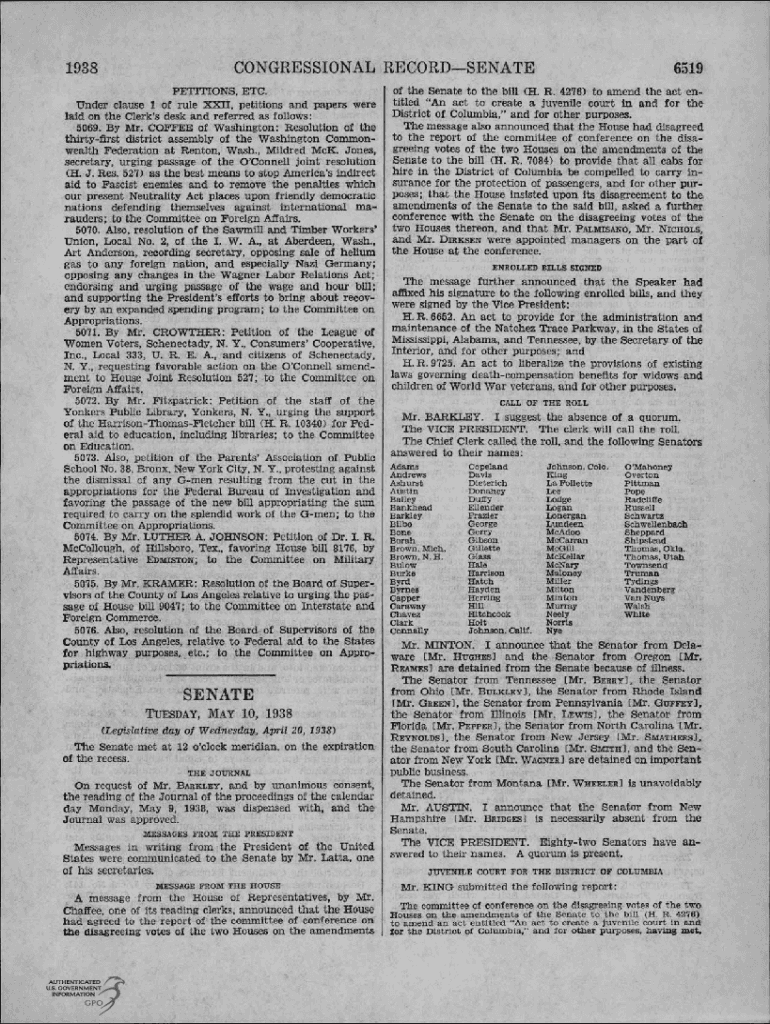 1938CONGRESSIONAL RECORDSENATE6519PETITIONS, ETC. Of the Senate to the bill (H. R. 4276) to amend the act under clause 1 of rule XXII, petitions and papers were titled \” An act to create a juvenile