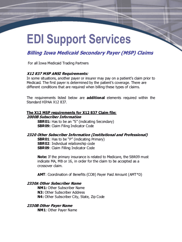 Get the free Online Billing Iowa Medicaid Secondary Payer (MSP ... - pdfFiller