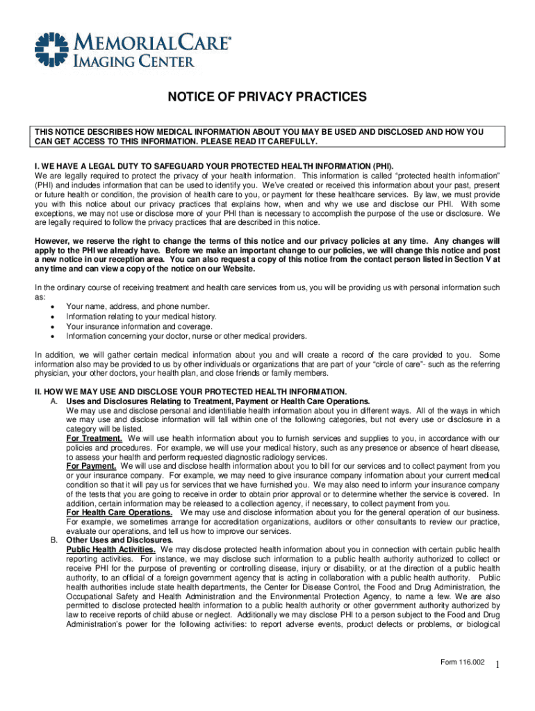Get the free NOTICE OF PRIVACY PRACTICES THIS NOTICE DESCRIBES ... - memorialcare.org
