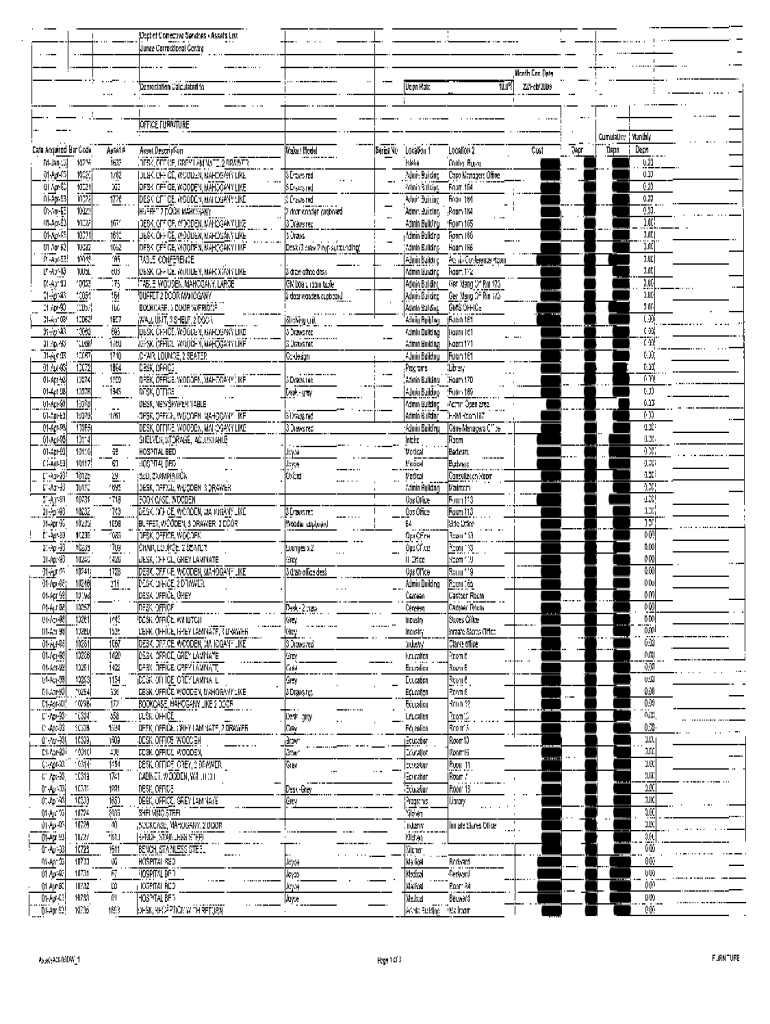 Inept of Corrective Services Assets list June Correctional Centric III Depreciation Calculated modern Rate! I Month End Date10.0%22/Feb/2009IIOFFICE FURNITURE Date Acquired Bar Code 04Jan93 01Apr93