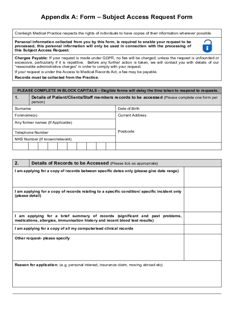 Get the free Appendix A: Form Subject Access Request Form - Layton Medical Centre