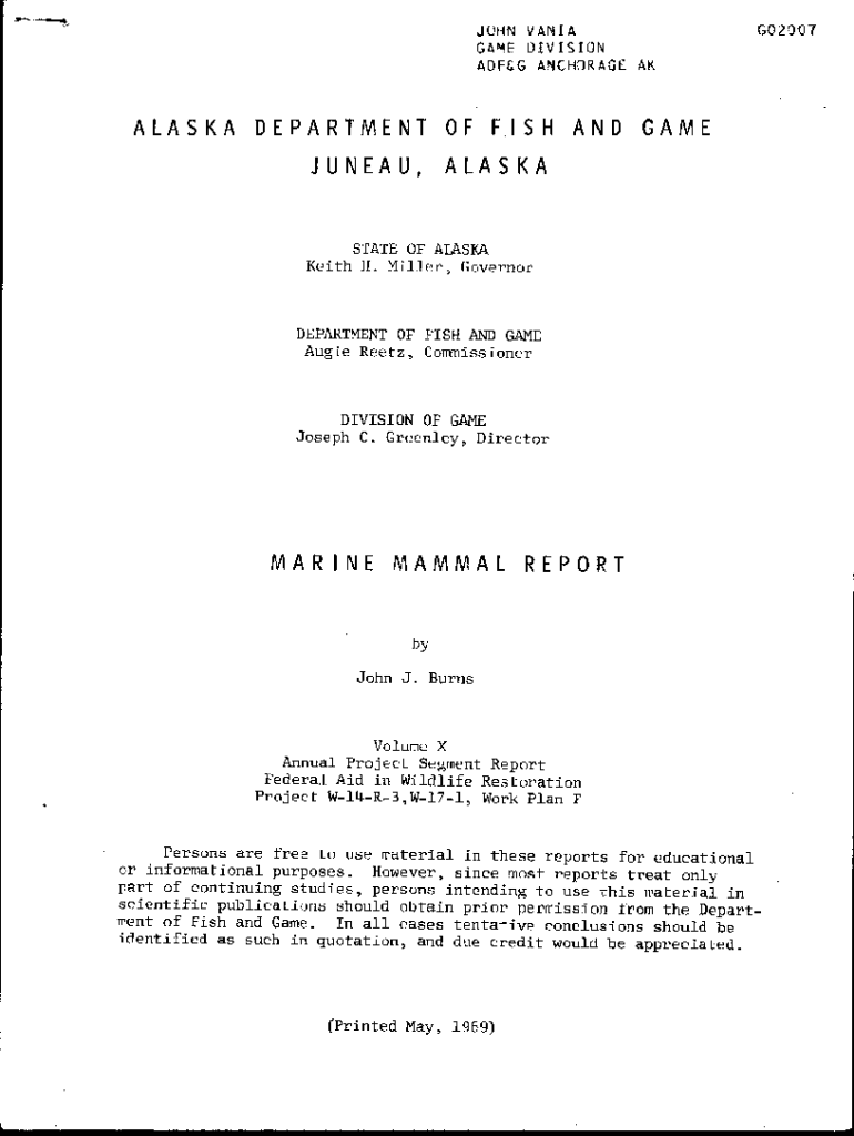 Get the free Marine Mammal Report- Volume X, Project W-14-R-3, W-17-1, Work ...