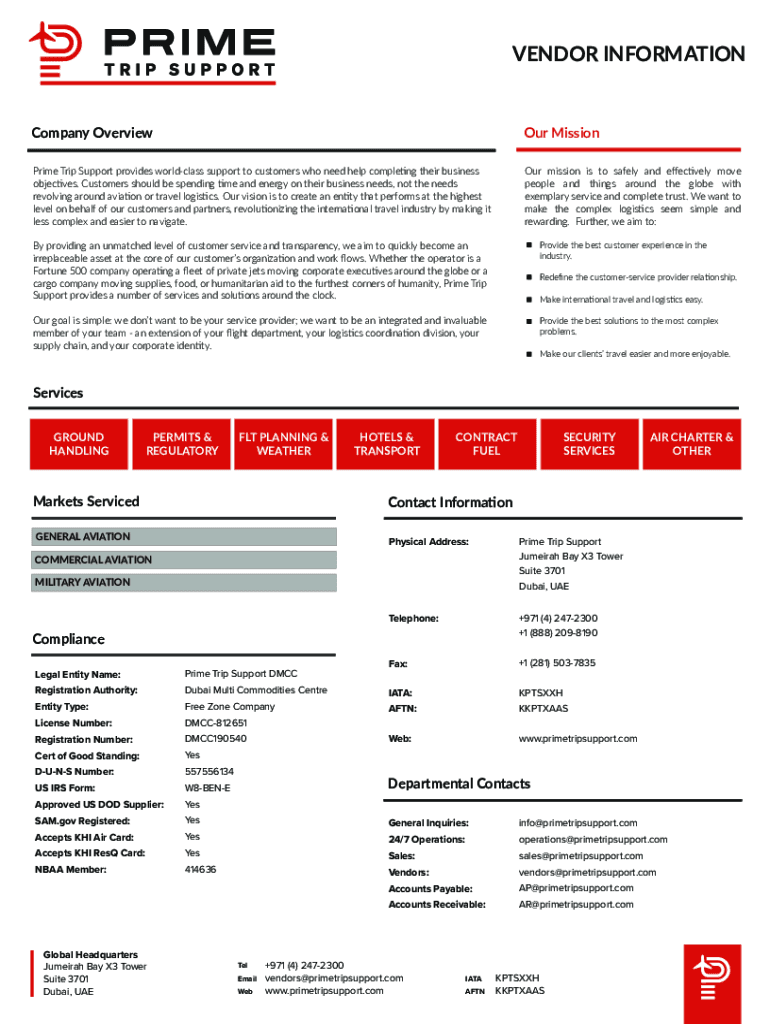 VENDOR INFORMATIONCompany Overview Missionaries Trip Support provides world-class support to customers who need help completing their business objectives. Customers should be spending time and energy